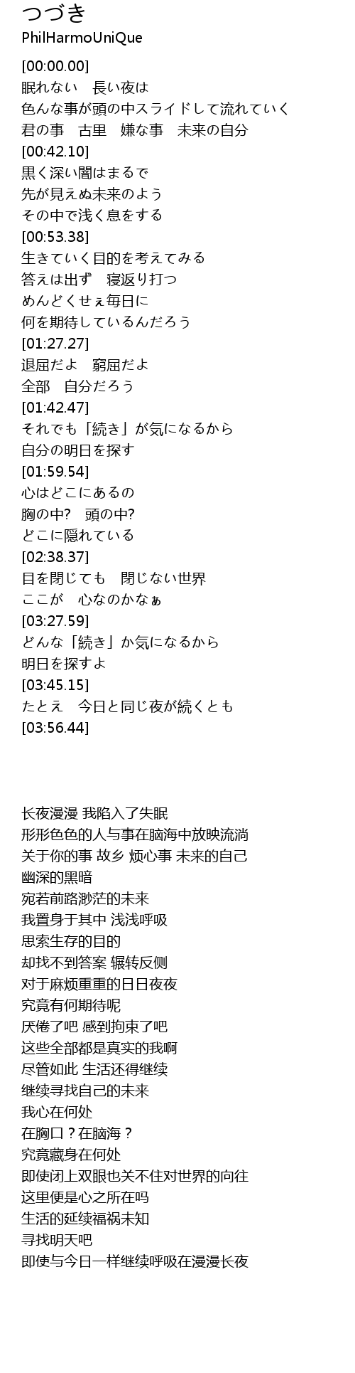 | [03:45.84] | 即使与今日一样继续呼吸在漫漫长夜 |