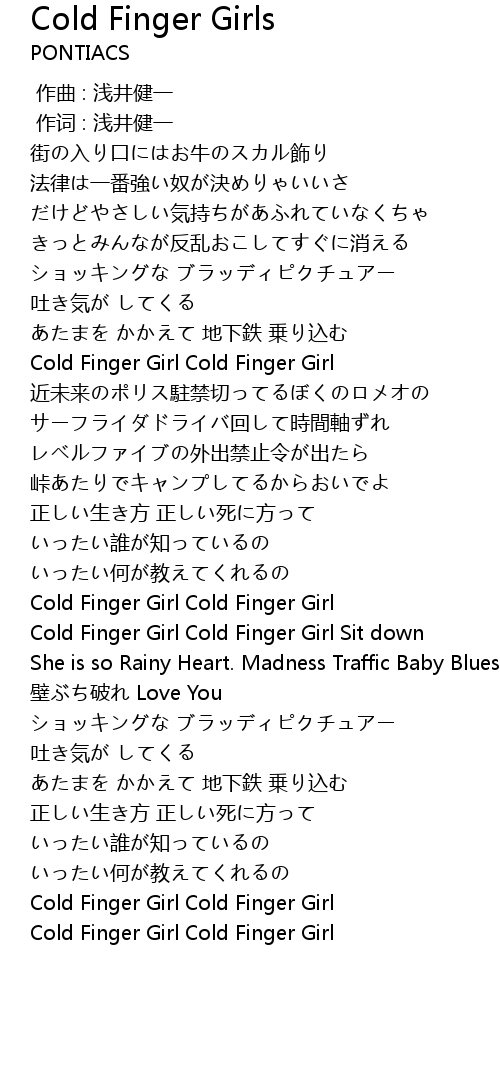 | [01:52.000] | Cold Finger Girl Cold Finger Girl Sit down |