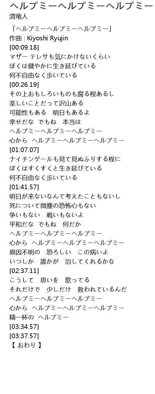 | [00:01.18] | 「ヘルプミーヘルプミーヘルプミー」 |