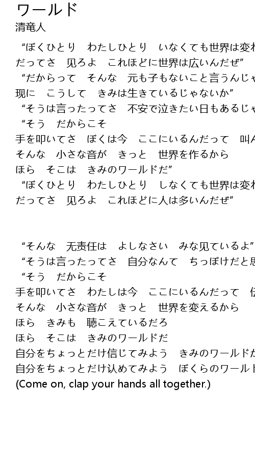| だってさ 见ろよ これほどに世界は広いんだぜ” | |