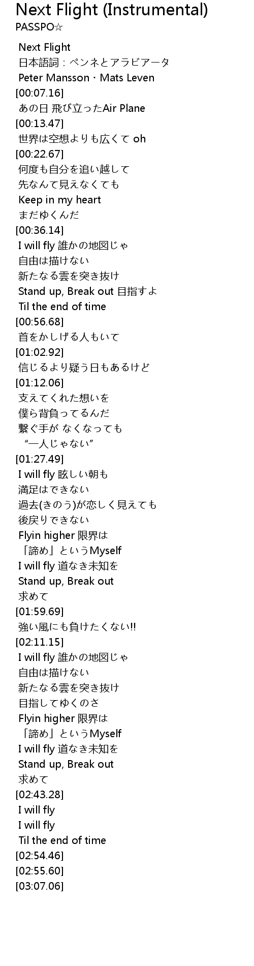 | [00:09.52] | あの日 飛び立ったAir Plane |