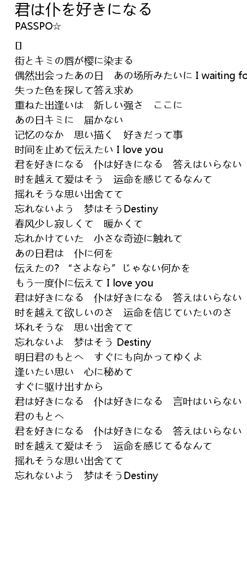 | 君は好きになる 仆は好きになる 言叶はいらない そんな感じ | |