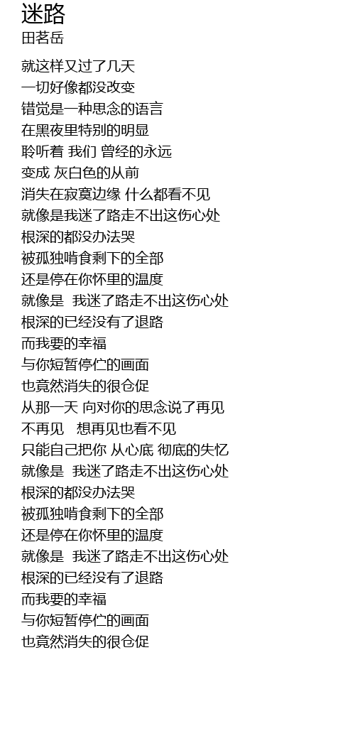 | jiù xiàng shì wǒ mí le lù zǒu bù chū zhè shāng xīn chù | |