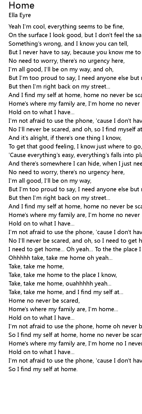 | And I find my self at home, home no never be scared, | |