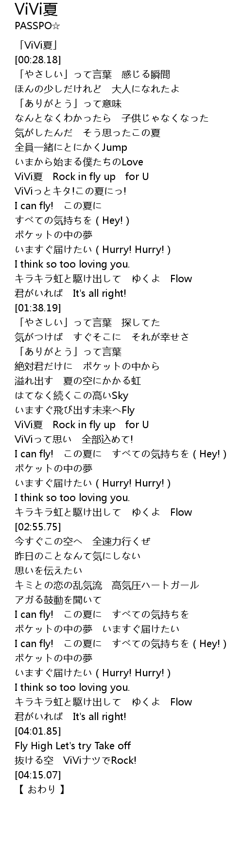 | [02:27.60] | ViViって思い 全部込めて! |