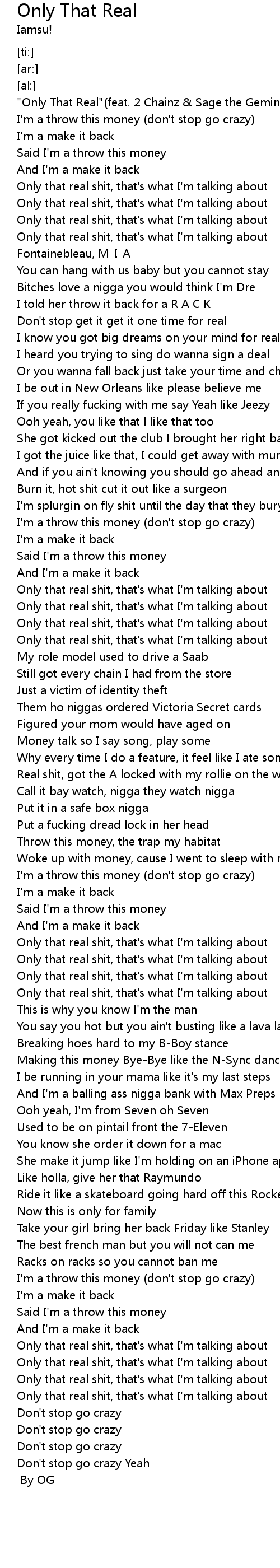 [00:03.35] "Only That Real"(feat. 2 Chainz & Sage the Gemini)