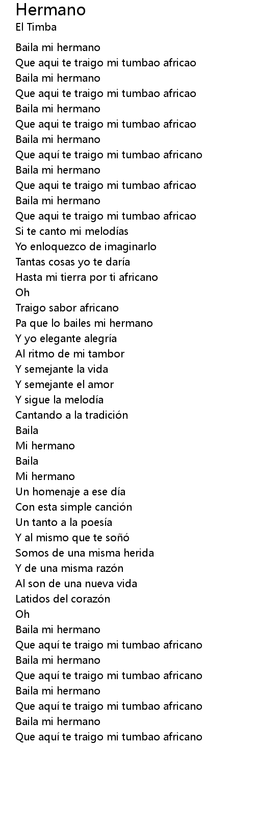 | [00:15.35] | Baila mi hermano |