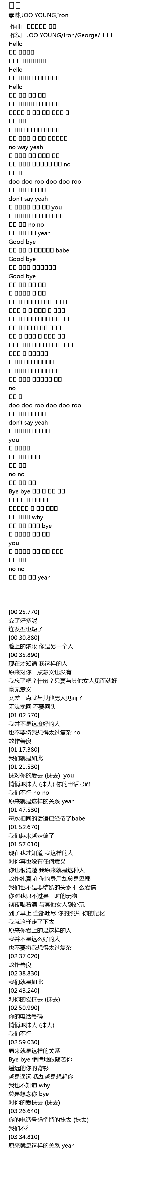 | [00:01.00] | zuo ci : JOO YOUNG Iron George |