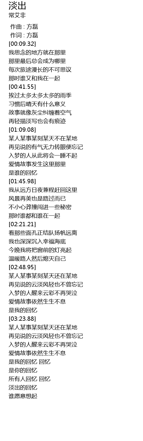 | [04:35.63] | 淡出的回忆 |