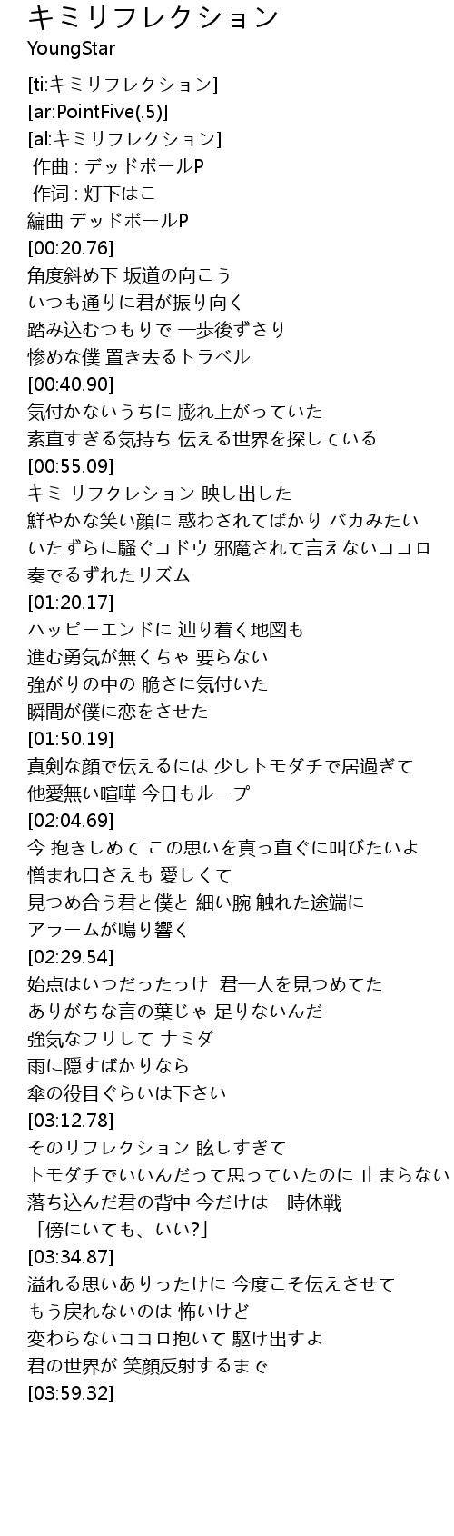 | [03:13.28] | そのリフレクション 眩しすぎて |