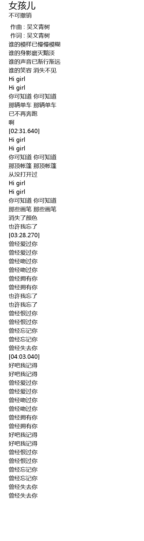 | [02:03.030] | Hi girl |