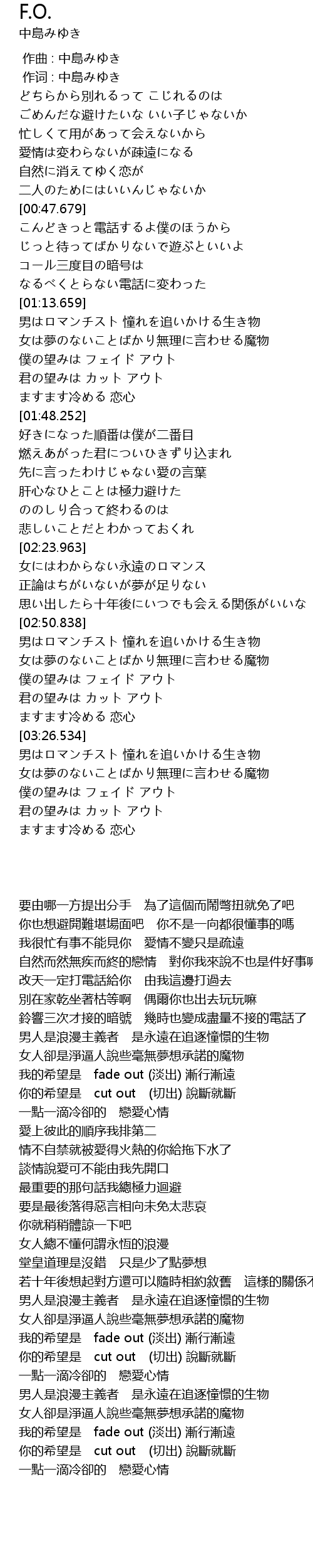 | [02:52.033] | 男はロマンチスト 憧れを追いかける生き物 |