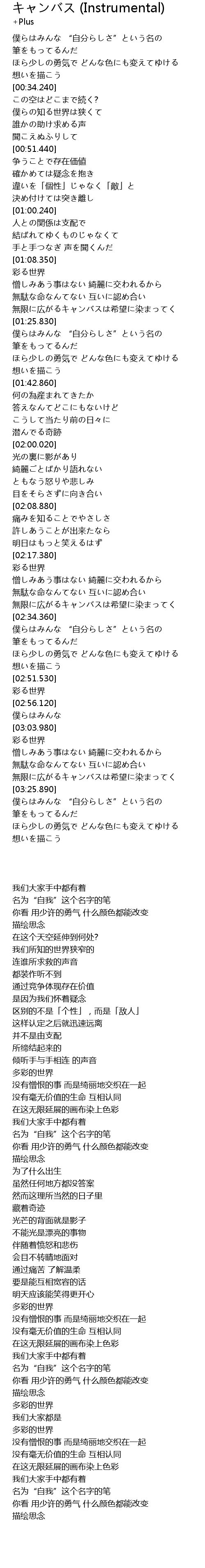 | [03:21.900] | 無限に広がるキャンバスは希望に染まってく |
