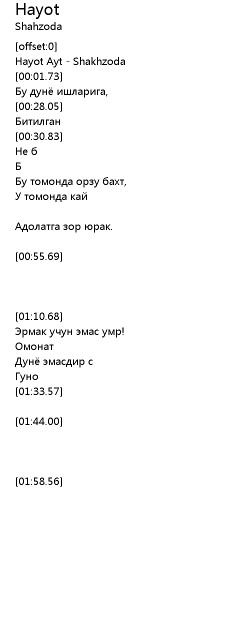 [00:00.85] Hayot Ayt - Shakhzoda
