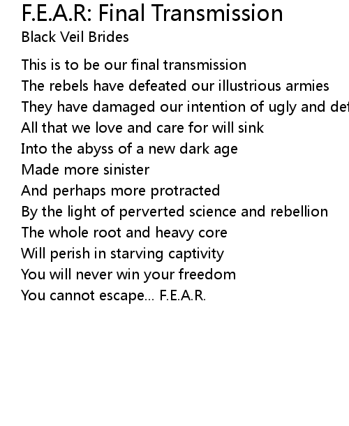 | This is to be our final transmission | |