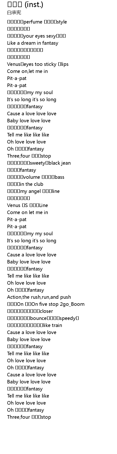 | [00:18.334] | 니숨막히는perfume 가슴뛴내style |