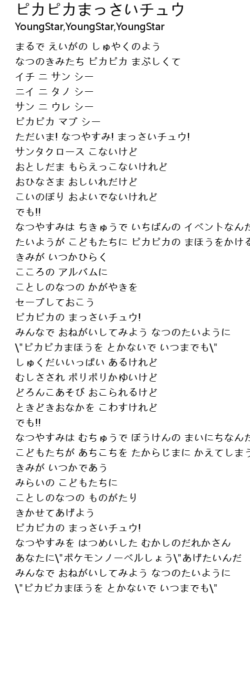 \"ピカピカまほうを とかないで いつまでも\" |