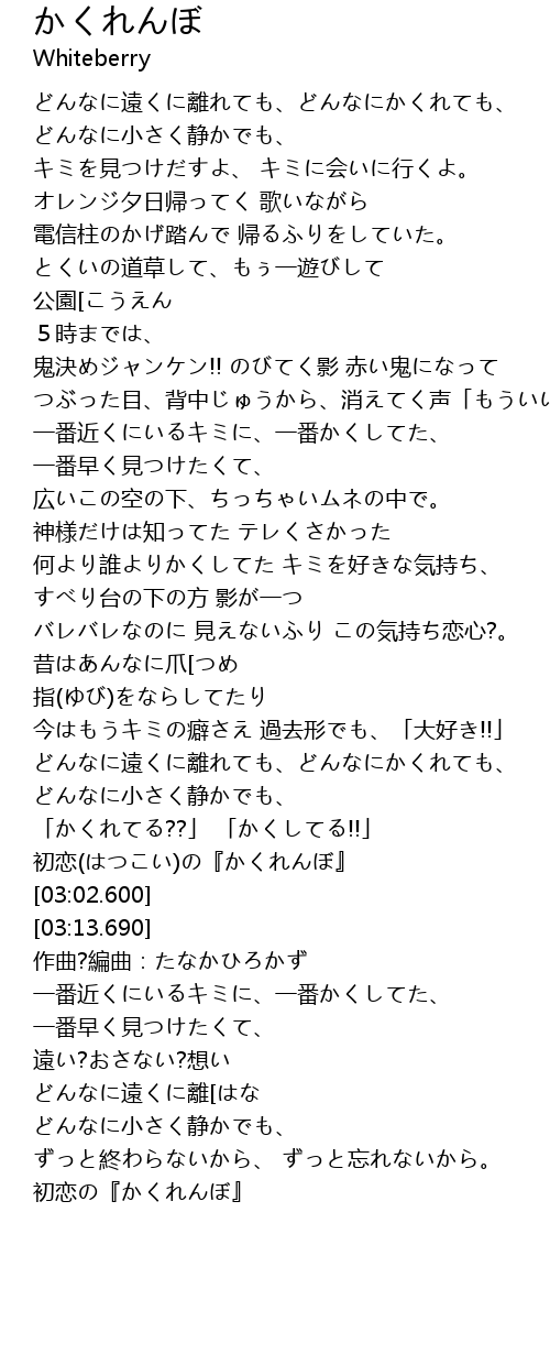 | [04:12.660] | 初恋の『かくれんぼ』 |
