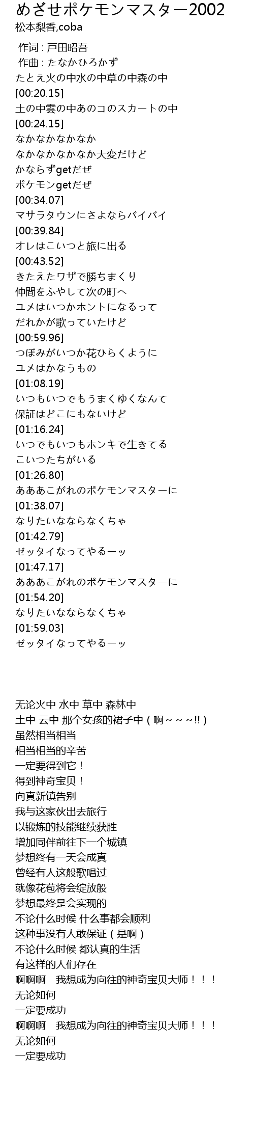 | [01:47.77] | あああこがれのポケモンマスターに |