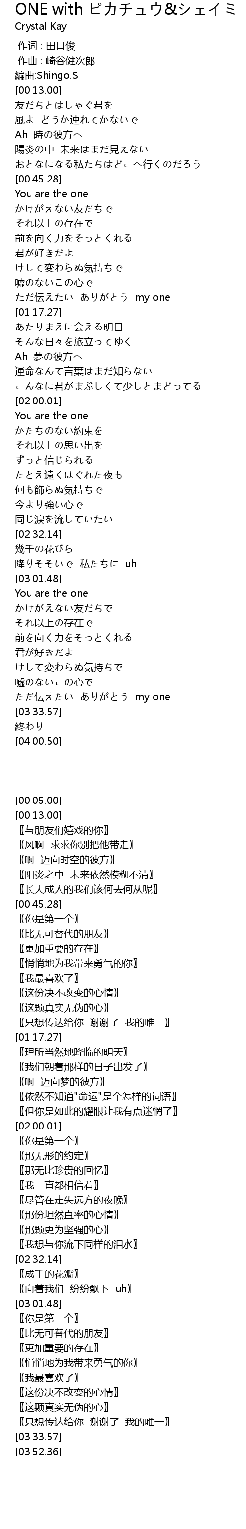 | 歌曲 | ONE with ピカチュウ&シェイミ |