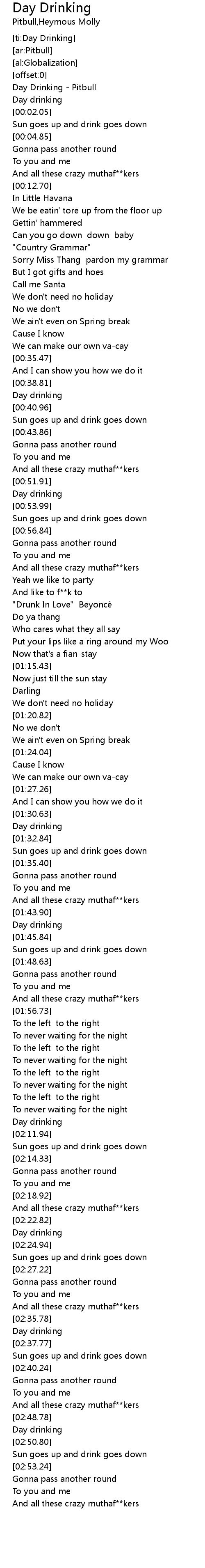 | [00:00.24] | Day Drinking - Pitbull |