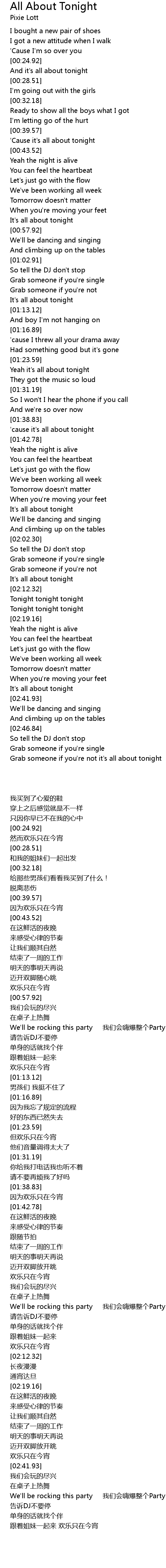 'Cause it's all about tonight |