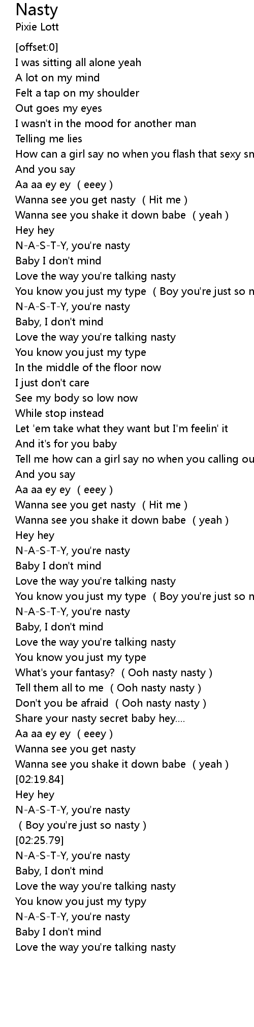 | [02:22.35] | N-A-S-T-Y, you're nasty |