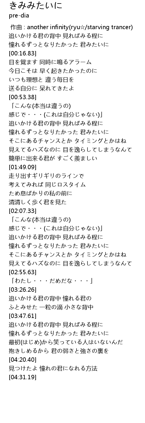 | [04:20.64] | 見つけたよ 憧れの君になれる方法 |