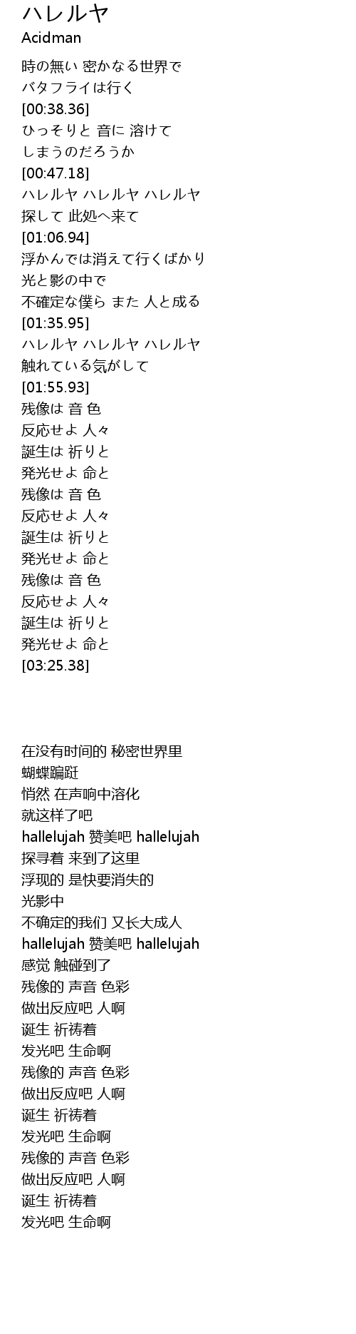 | [01:36.83] | ハレルヤ ハレルヤ ハレルヤ |