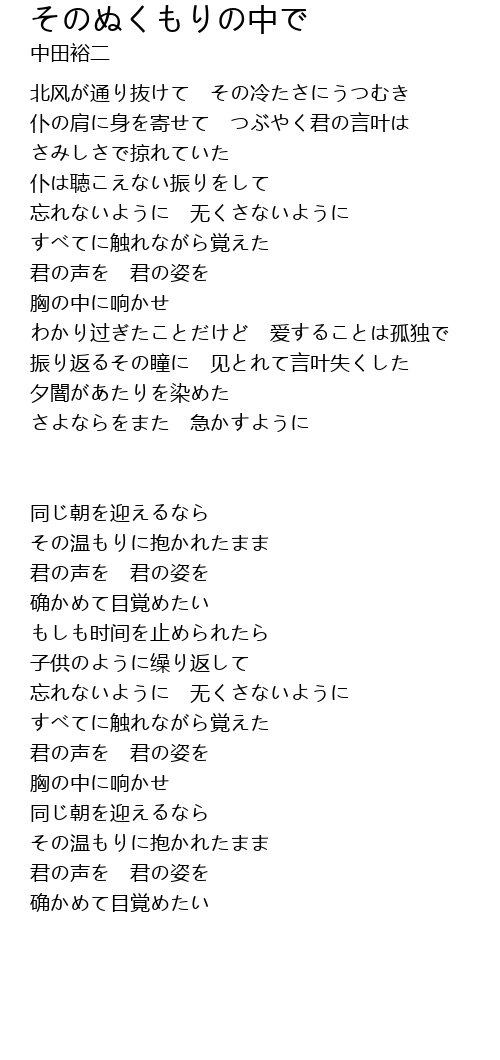 | 歌曲 | そのぬくもりの中で |