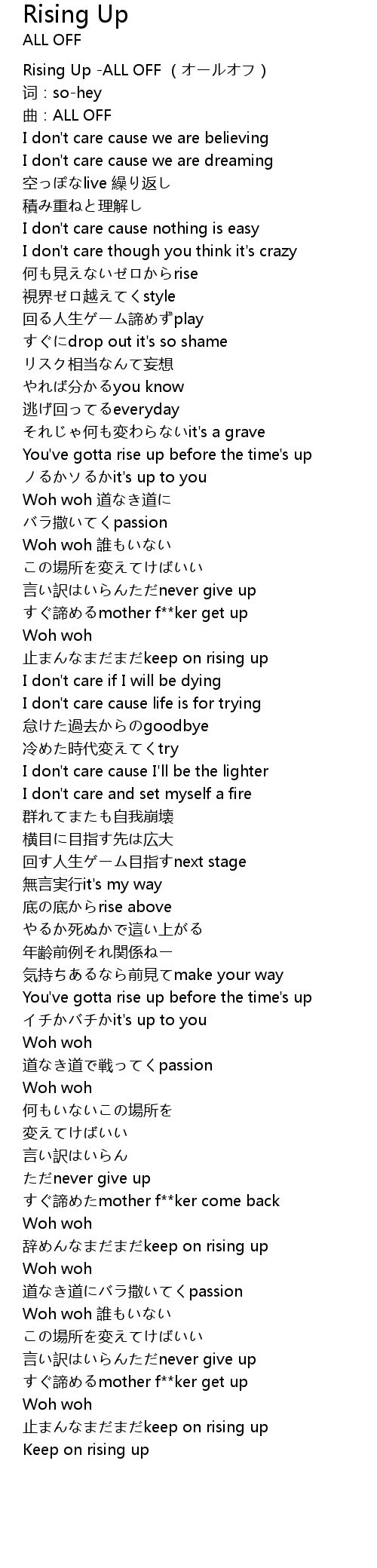 | [00:00.540] | Rising Up -ALL OFF (オールオフ) |