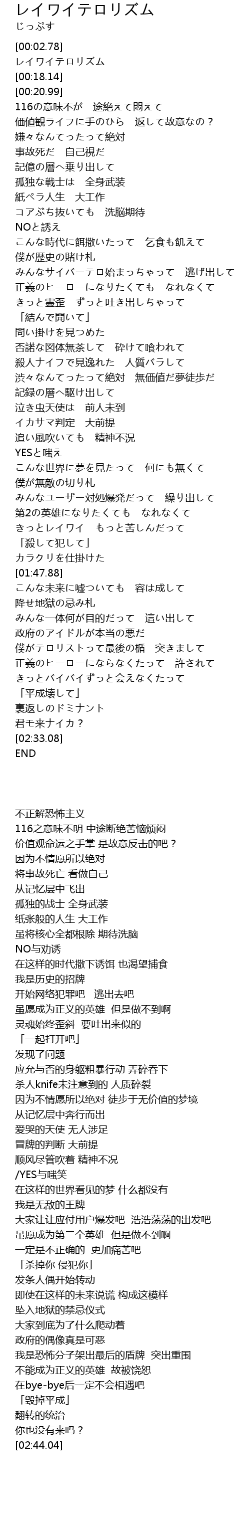 | [00:10.22] | レイワイテロリズム |