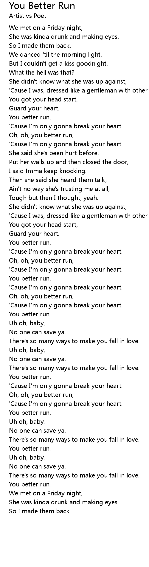 Oh, oh, you better run, |