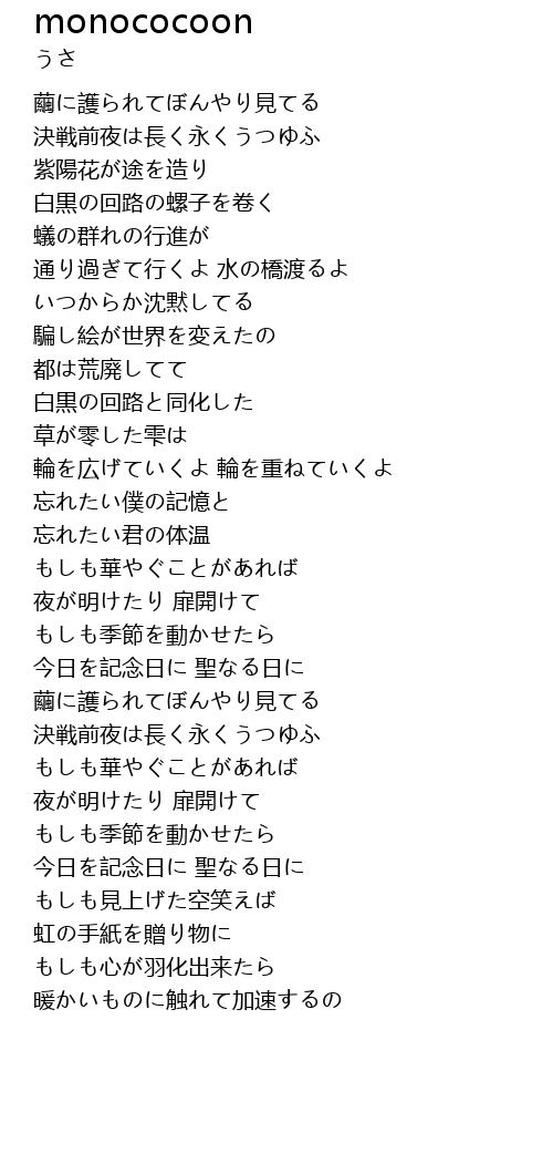 | 歌曲 | monococoon |
