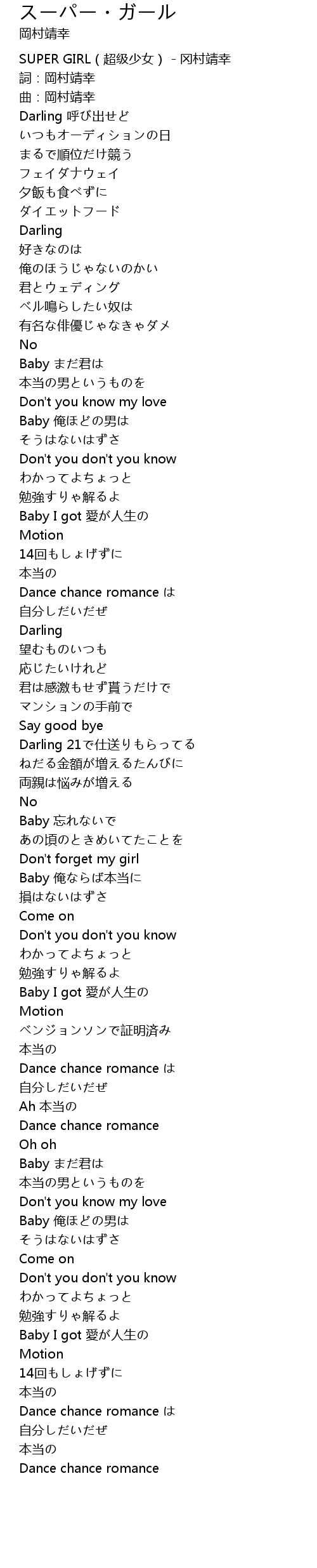 | [00:00.241] | SUPER GIRL(超级少女) - 冈村靖幸 |