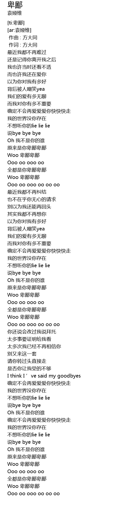 | [03:01.293] | 原来是你卑鄙卑鄙 |