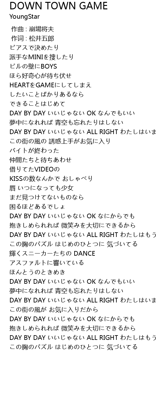 | 歌曲 | DOWN TOWN GAME |