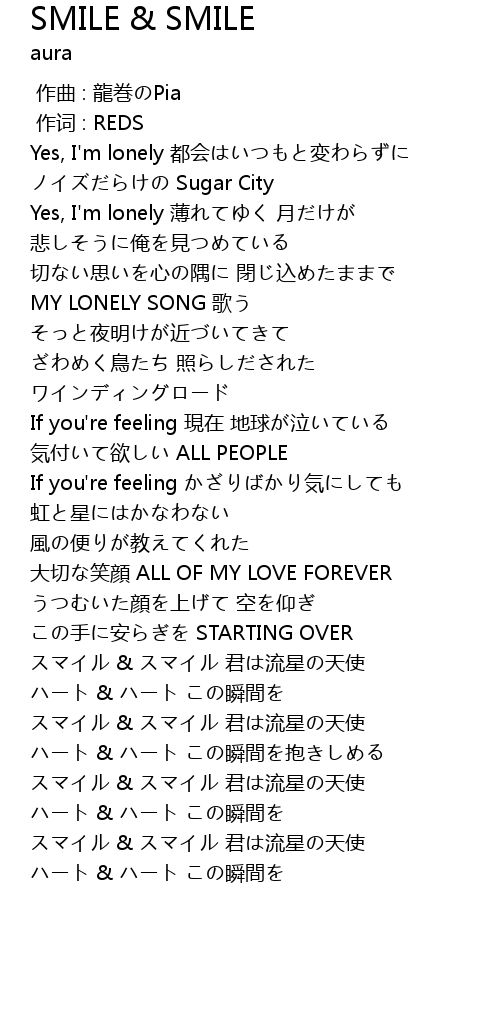 | [00:37.58] | Yes, I'm lonely 都会はいつもと変わらずに |