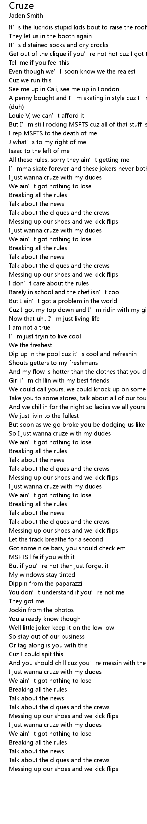 | So I just wanna cruze with my dudes | |