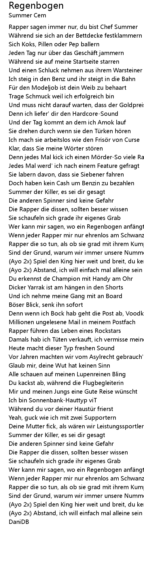 | Denn jedes Mal kick ich einen Mörder-So viele Rapper vermiesen meinen Tag | |