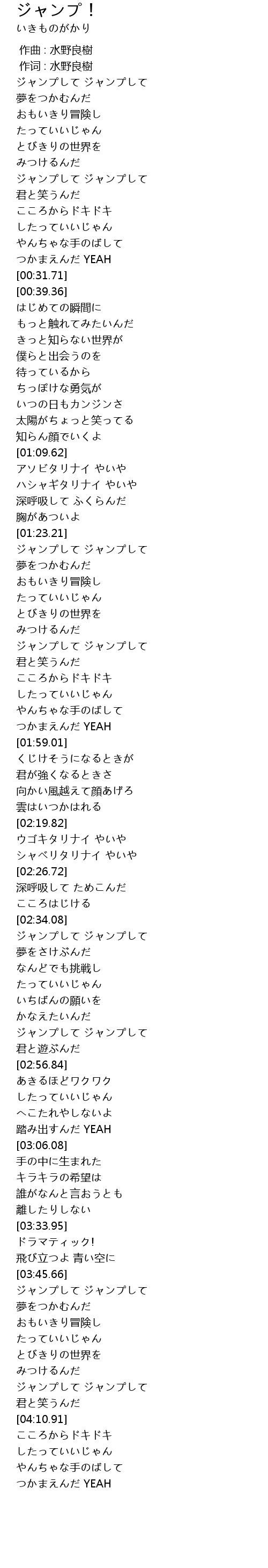 | [03:52.29] | ジャンプして ジャンプして |