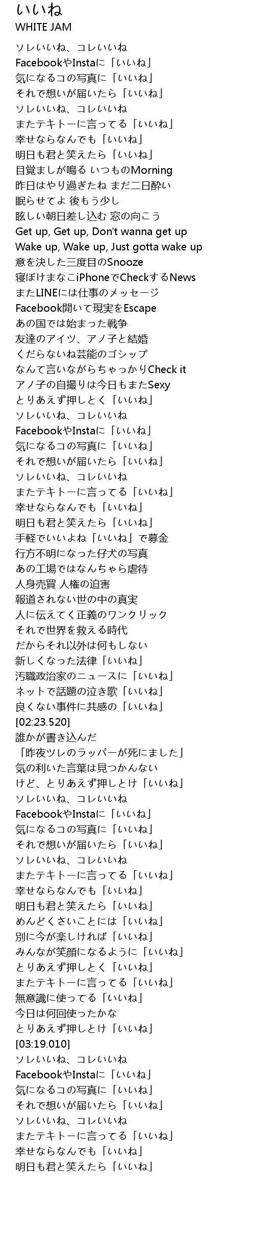 | [02:51.320] | 幸せならなんでも「いいね」 |