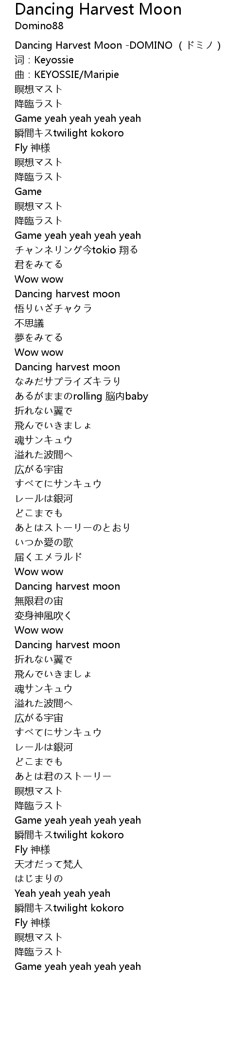| [00:00.275] | Dancing Harvest Moon -DOMINO (ドミノ) |