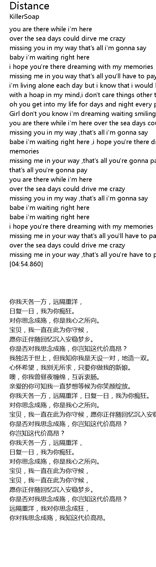 you are there while i'm here over the sea days could drive me crazy |