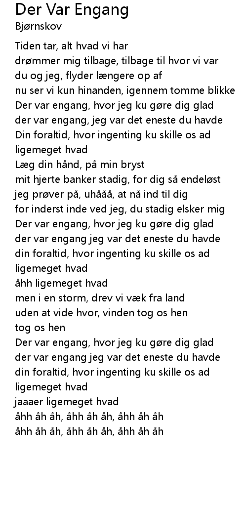 | [00:43.51] | Der var engang, hvor jeg ku g re dig glad |