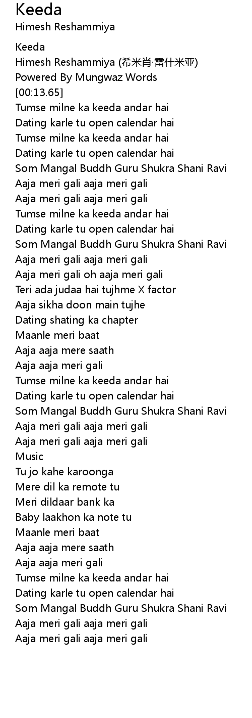 | [00:41.15] | Aaja meri gali aaja meri gali |