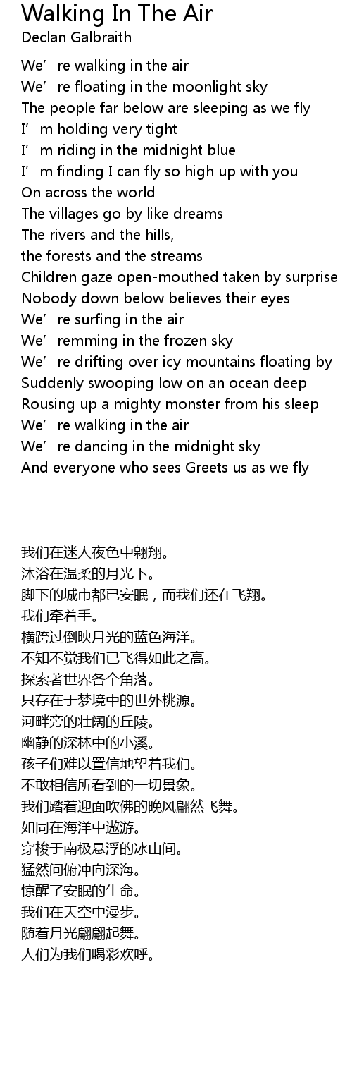 | [00:09.77] | We’re walking in the air |