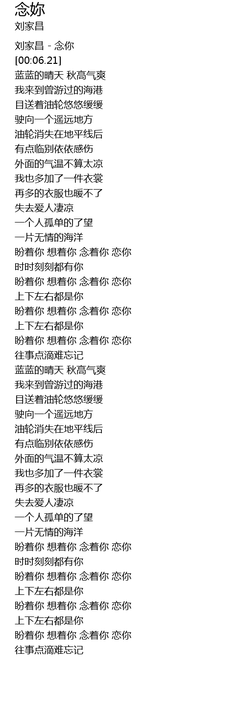 | [00:00.00] | 刘家昌 - 念你 |