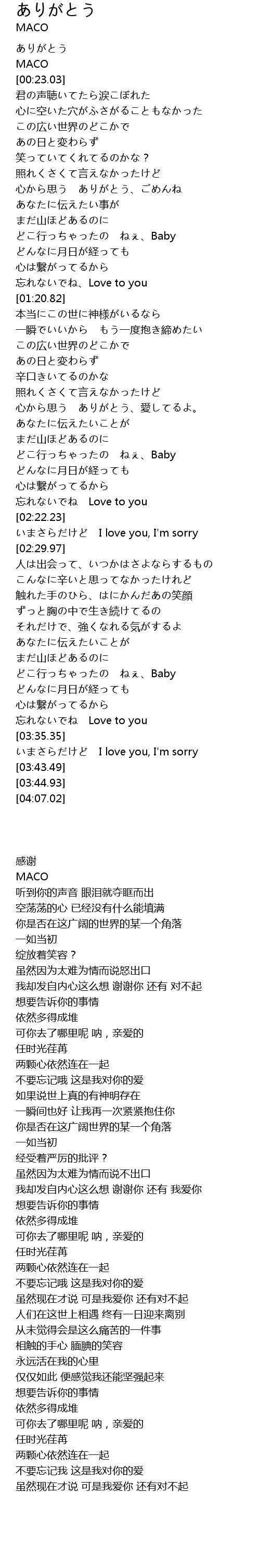 | [00:00.00] | ありがとう |