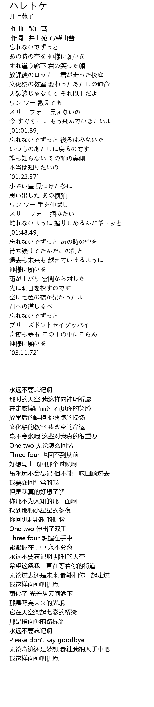 | [00:00.31] | 作词 : 井上苑子/柴山彗 |